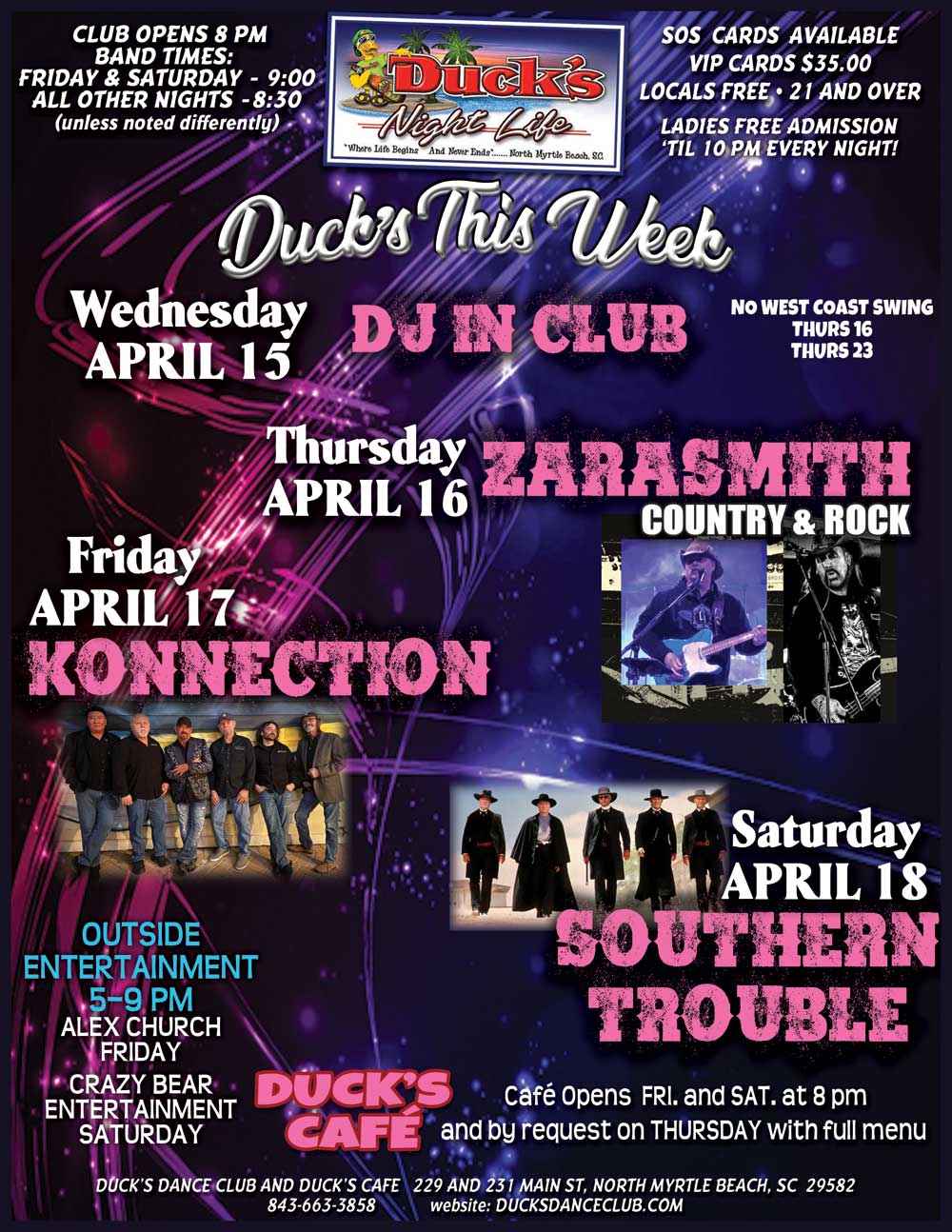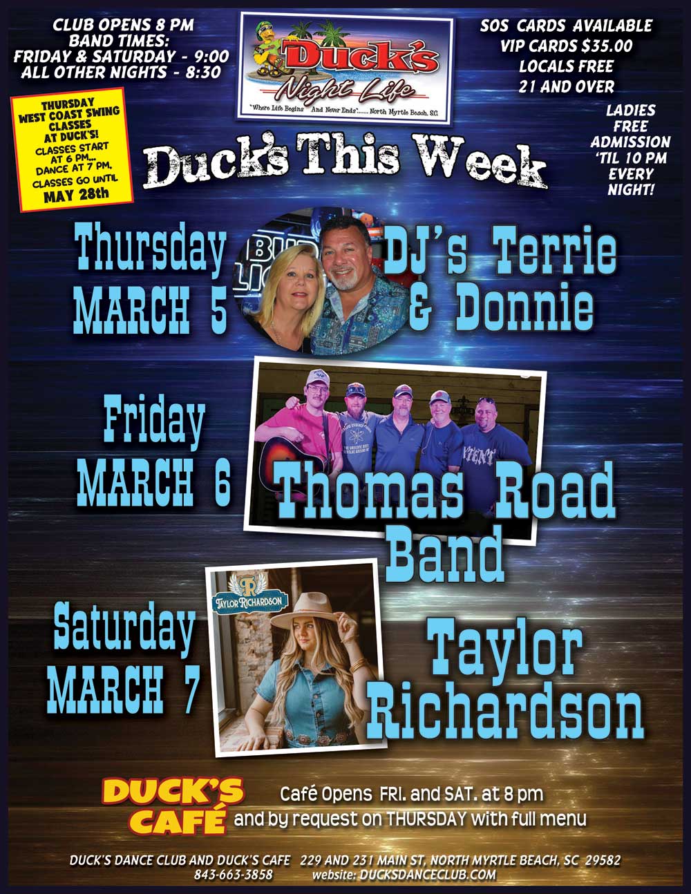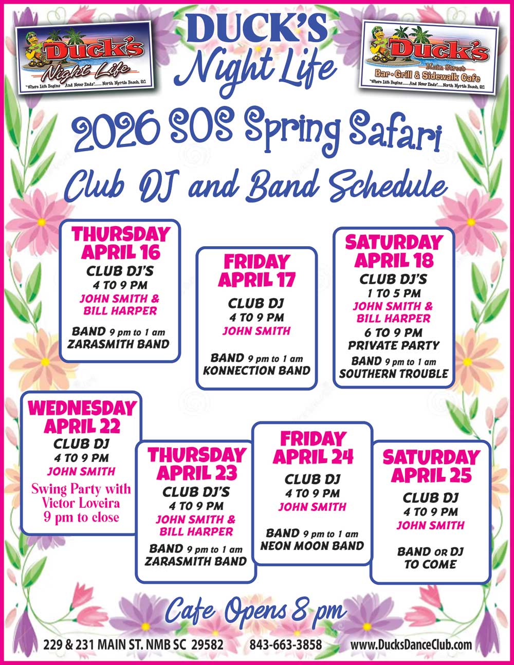Duck’s has THE HOTTEST BANDS, shag events like SOS, all going on at Duck’s!